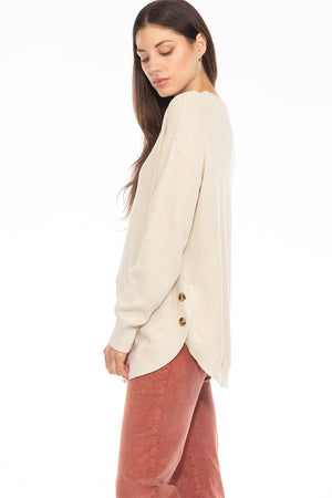COTTON VINTAGE SWEATER SIDE BUTTON CREW TUNIC